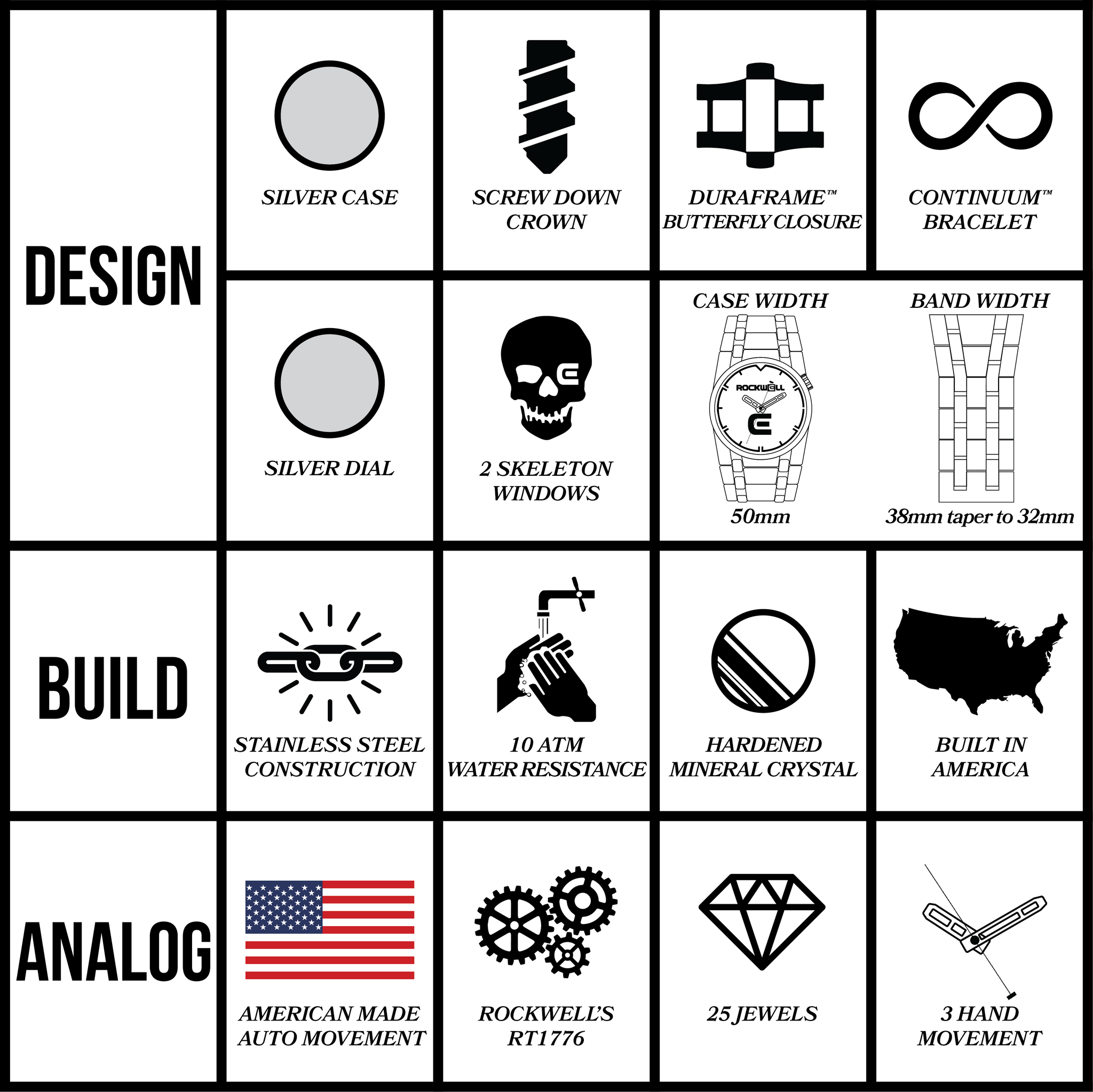 Rockwell loyalists and new fans alike, get ready to raise a glass. Our iconic 50mm watch is reinvented. A new icon is born, and it is not here to play nice. Our 50mm automatic has entered the chat and it’s rewriting the legacy of American-built watches. We proudly present the Lincoln Edition in silver finish.