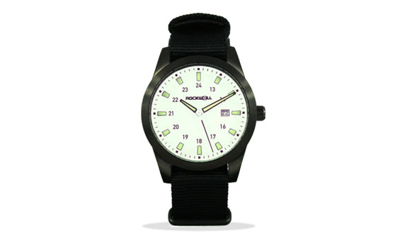 Built with never-before-seen features in the Rockwell Time family of watches, the Vanguard takes “dive watch” to a whole new level. The 10 ATM water resistance and double layered nylon band make it ideal for any wilderness explorer, while its rotating bezel allows the wearer to set a manual timer. And, of course, it wouldn’t be Rockwell without that flair of American pride, so we added a tasteful US flag to the center of the face.